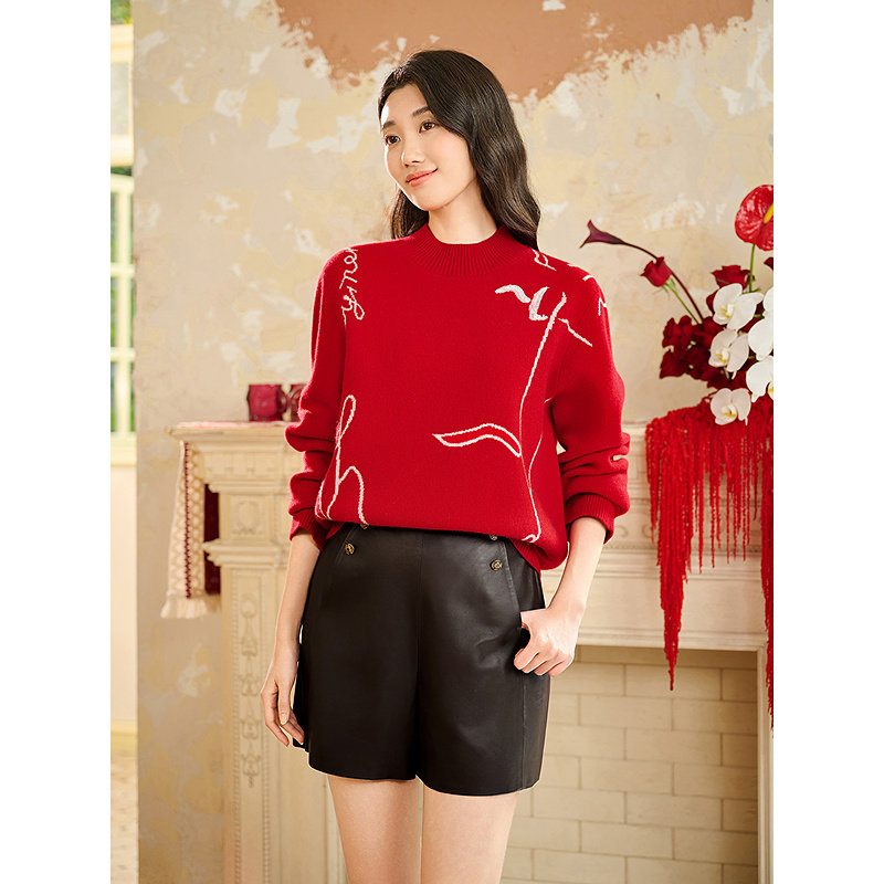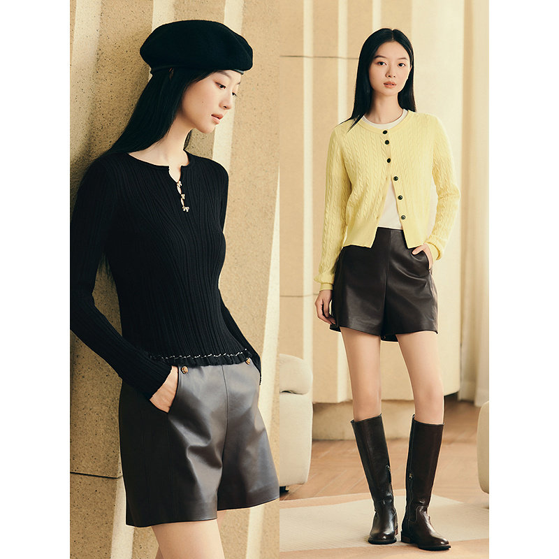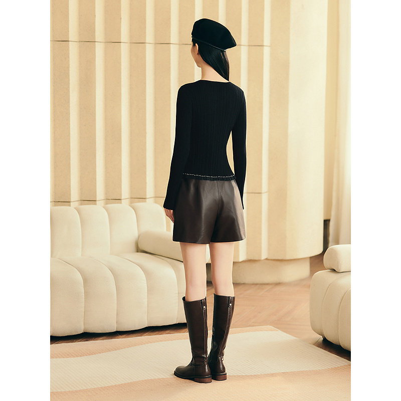 YINER音儿专选2025冬季新款法式复古百搭全羊皮高腰A字短款皮裤