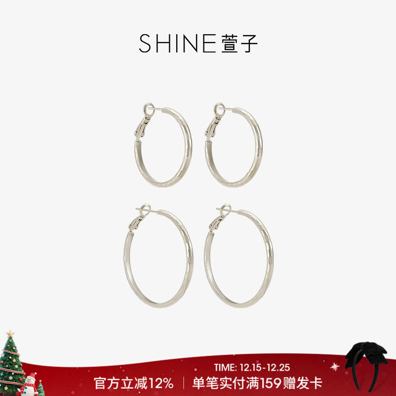 银色素圈大耳圈女款2025新款爆款圆圈耳环轻奢高级方圆脸圈圈耳饰