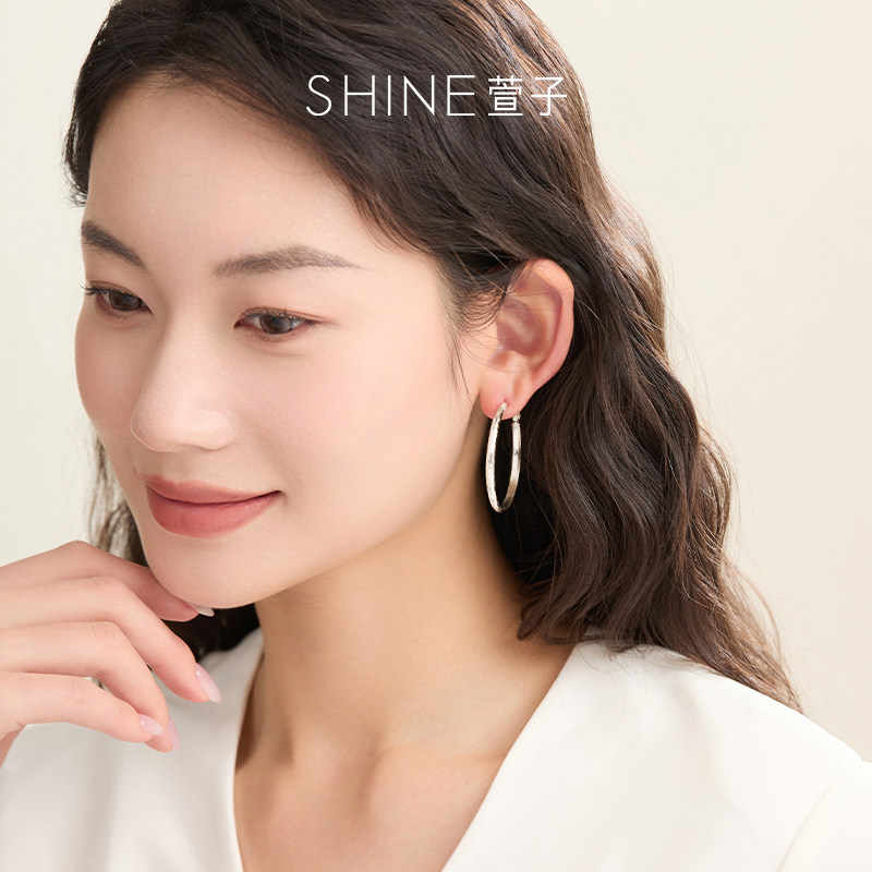 圆圈耳环菱纹光面耳圈潮高级感不掉色925银针轻奢欧美风夸张耳饰