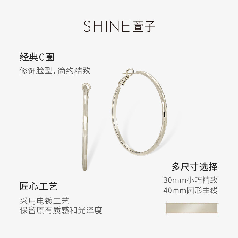 SHINE萱子饰品简约风极简金属耳圈40mm咖金耳环生日礼物