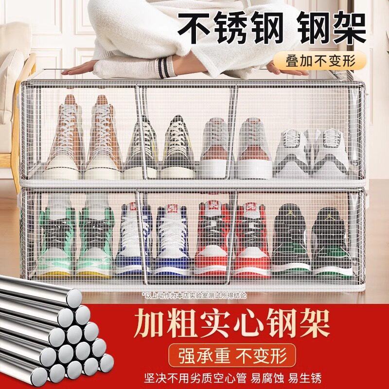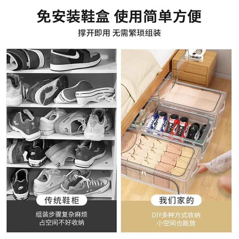 双窗鞋盒透明放鞋子收纳神器省空间鞋柜卧室床底免安装可折叠鞋架