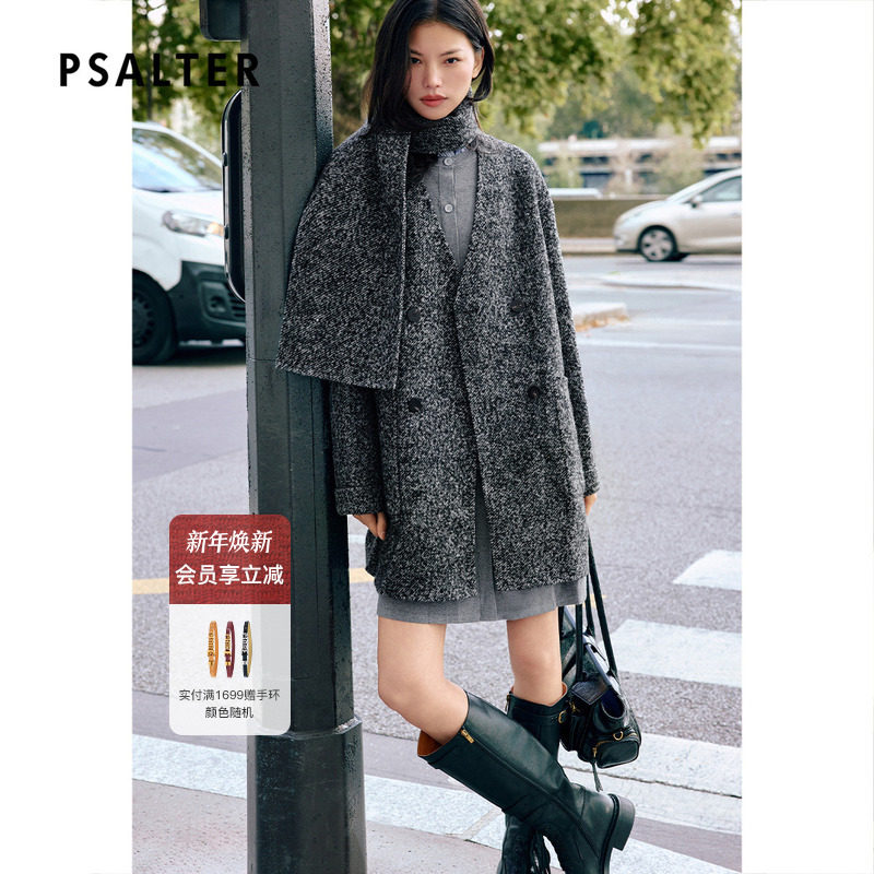诗篇专选双面呢围巾一手长直筒H型羊毛大衣毛呢外套2025冬季新款
