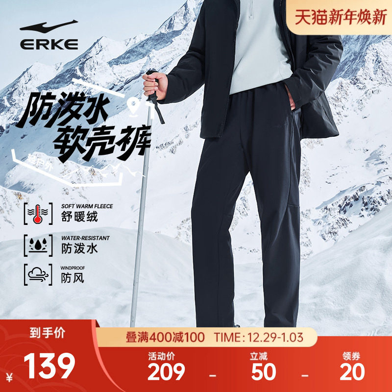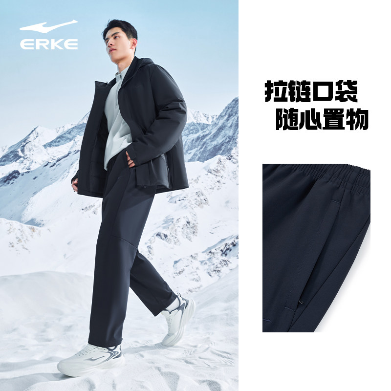 于适鸿星尔克加厚运动长裤男冬季新款男士防风男裤直筒裤子休闲裤