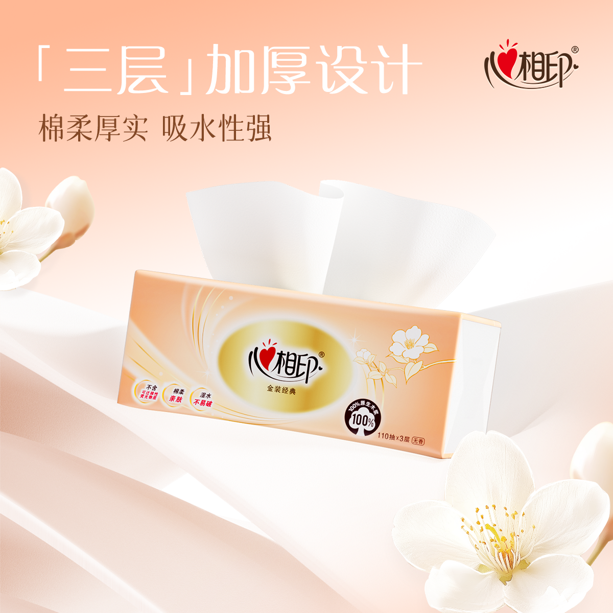 心相印纸巾抽纸整箱110抽24包家用实惠装纸抽餐巾纸面巾纸抽纸巾