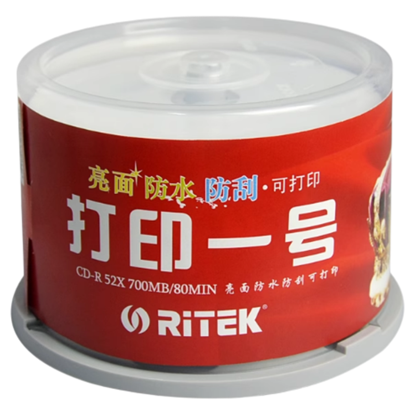 铼德RITEK打印一号CD-R光盘52X700M 高光防水dvd刻录光碟50片桶装