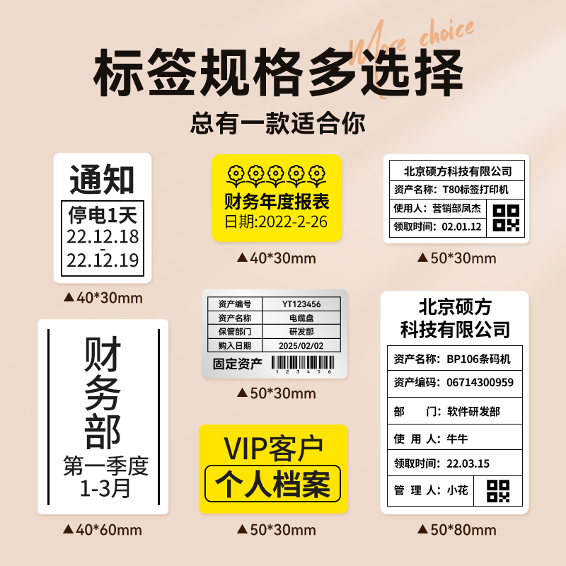 硕方T50pro/T80S办公用品固定资产标签打印机小型财务便携办公设备文件档案盒二维码多功能标签打印机