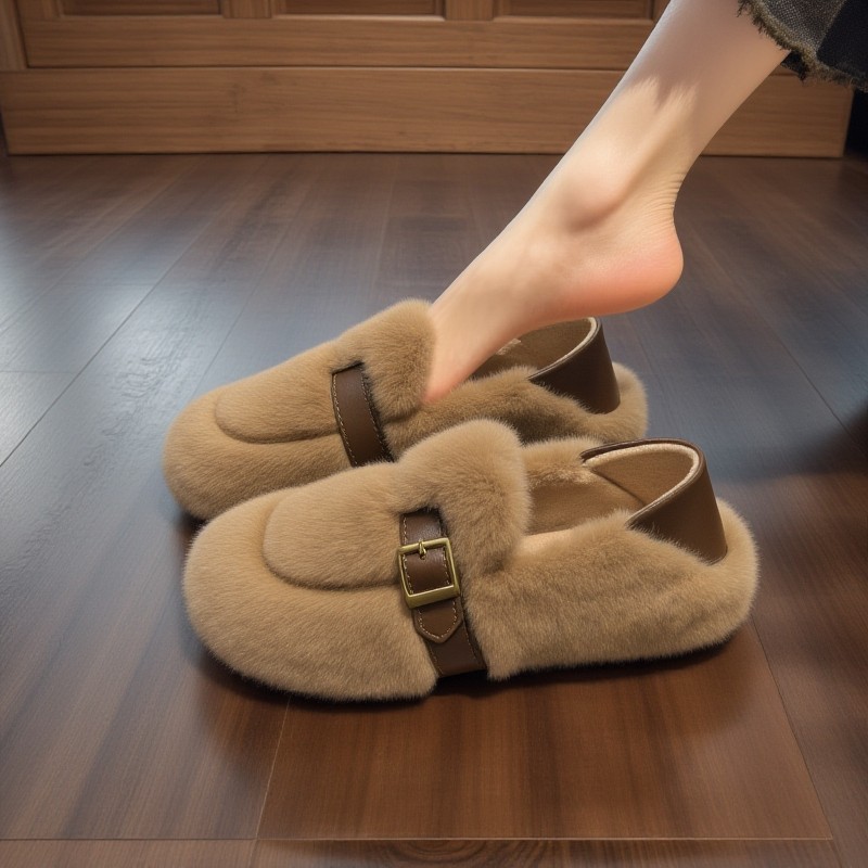 小香风水貂绒毛毛鞋女冬季外穿欧货加绒雪地靴软底一脚蹬豆豆棉鞋