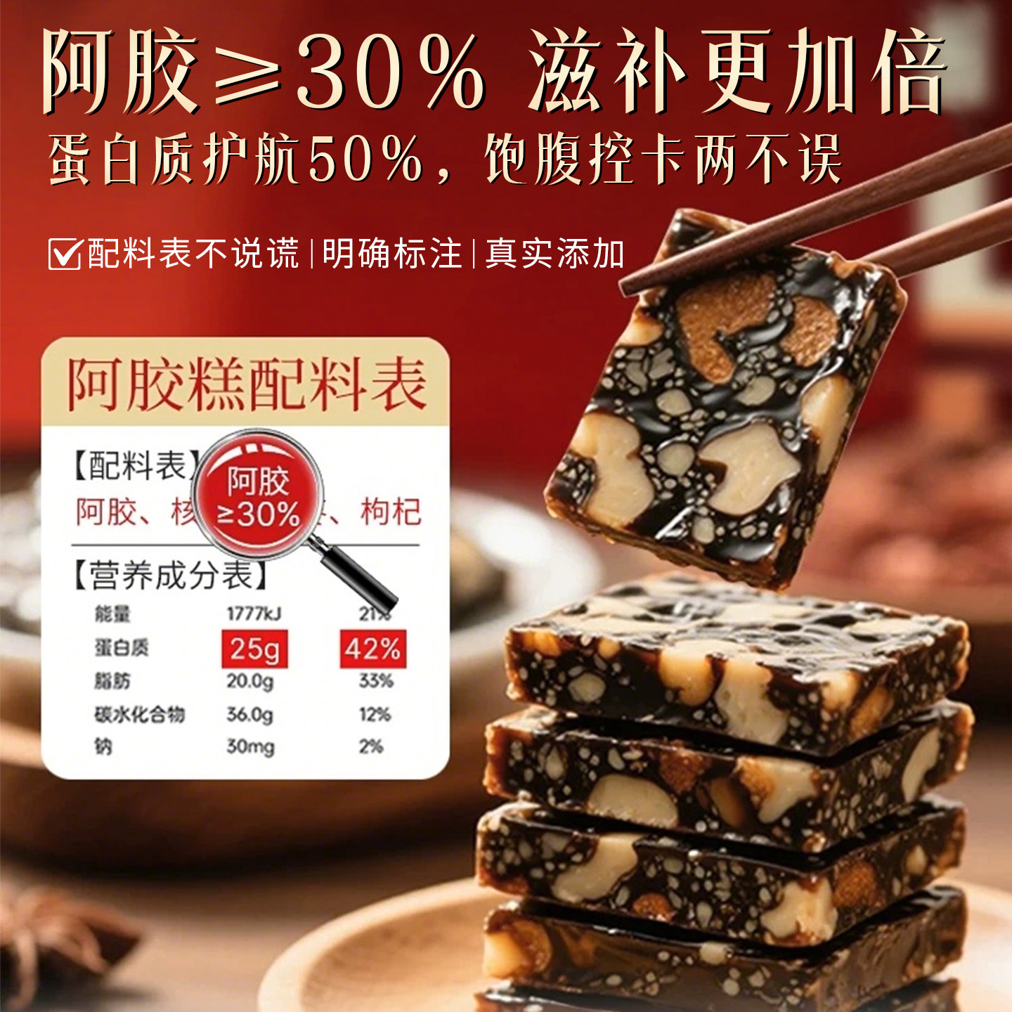阿胶糕正宗山东东阿即食红枣枸杞黑芝麻核桃阿胶固元糕阿胶膏纯块
