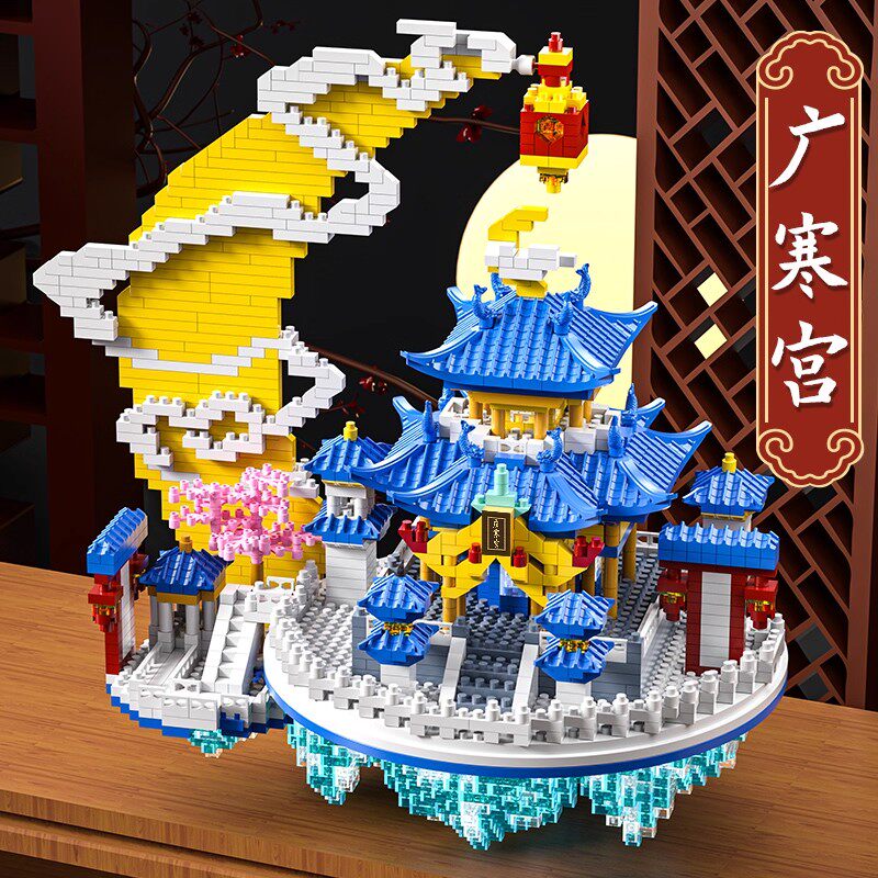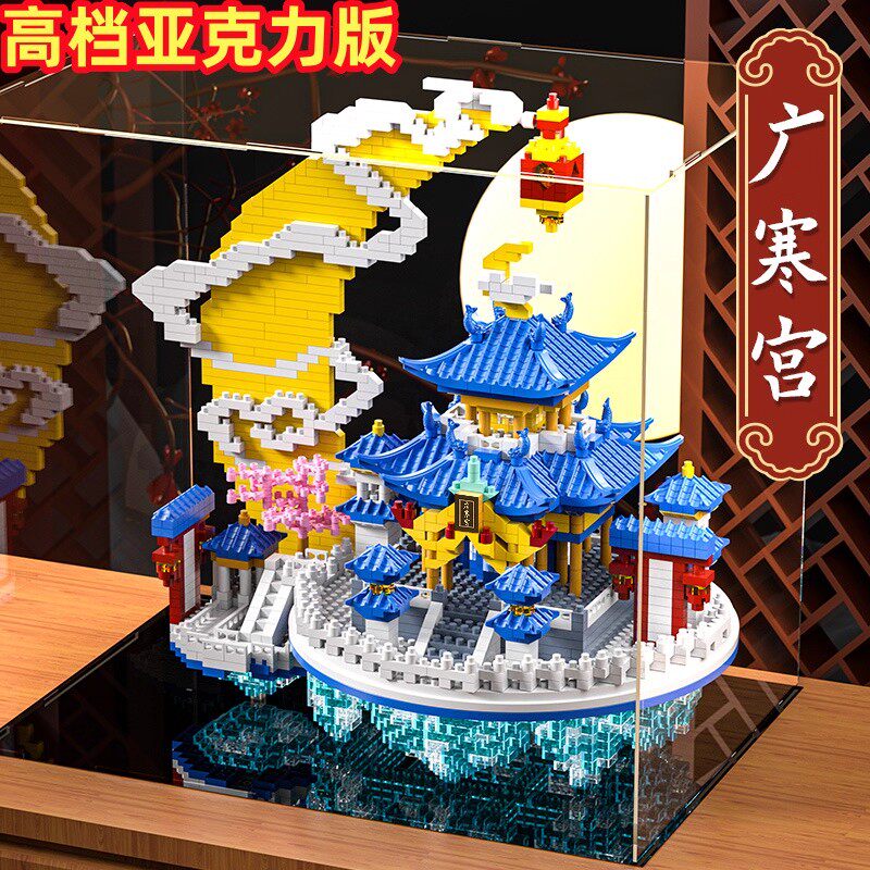 广寒宫月宫积木中国风大型建筑高难度小颗粒益智拼装玩具男女孩子