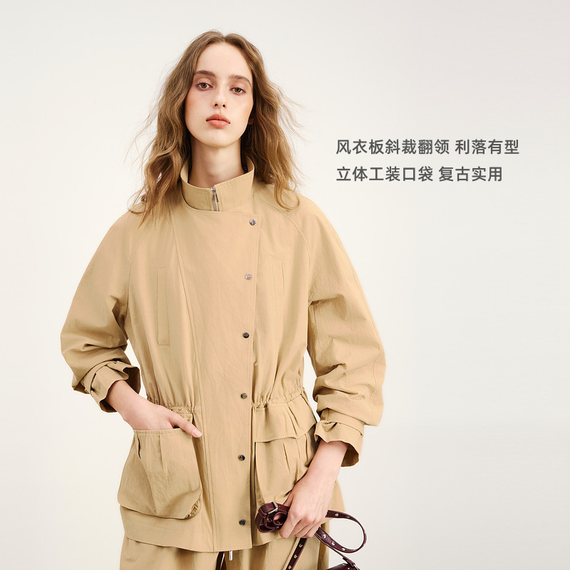 翻领风衣版夹克套装 凹凸肌理纸感棉时髦