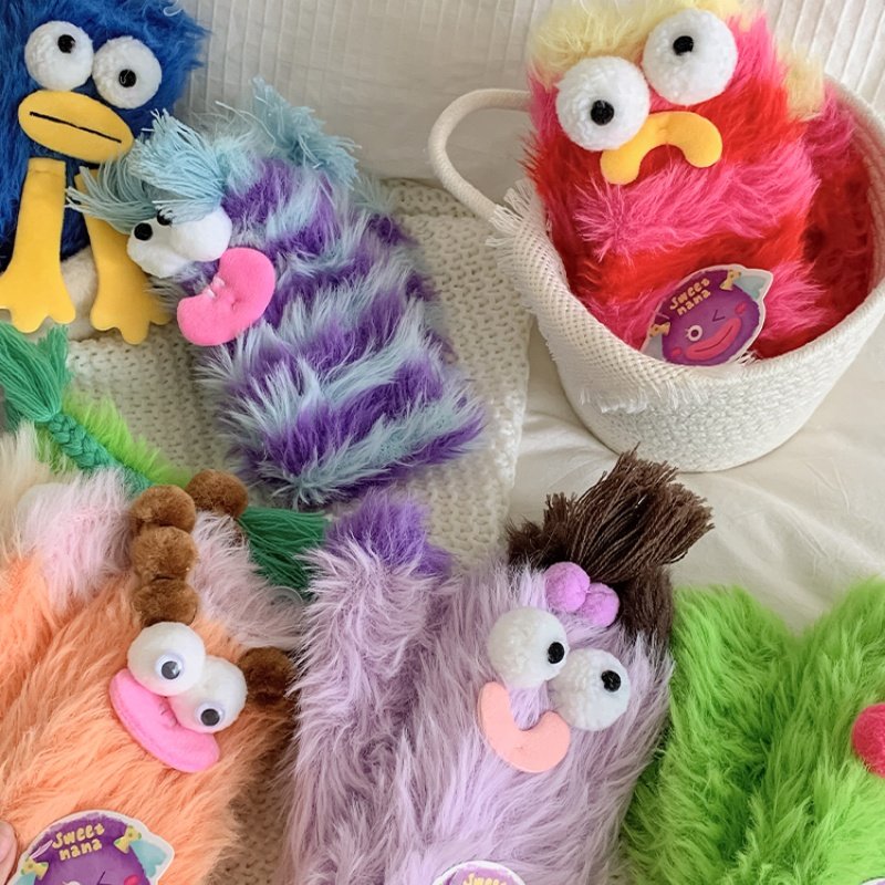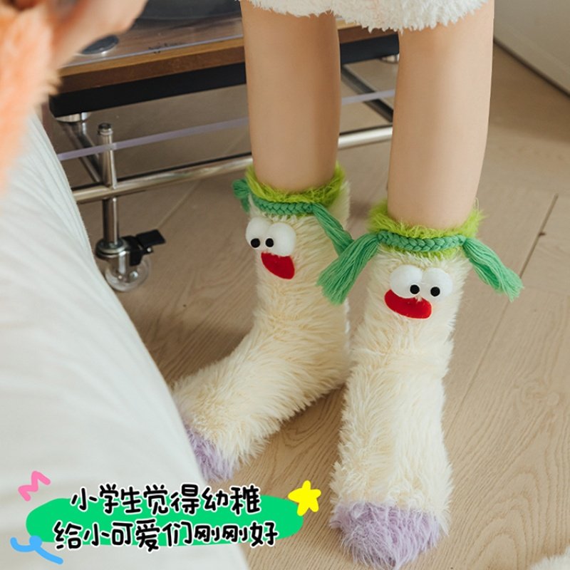 圣诞搞怪丑萌袜子女秋冬毛绒可爱袜珊瑚绒加厚居家睡眠毛毛地板袜