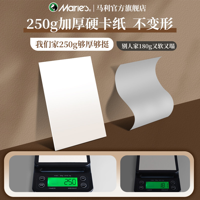 马利卡纸荷兰白卡纸a4美术专用硬卡纸8开白色肯特卡纸加厚250g儿童学生马克笔绘画本手抄报diy折纸打印手工纸