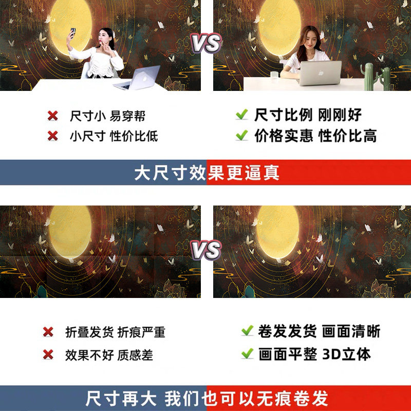 敦煌壁画直播背景布3d立体背景墙莫高窟直播背景布3d立体壁纸画直播间场景布置高级感快手拍视频段子可移动
