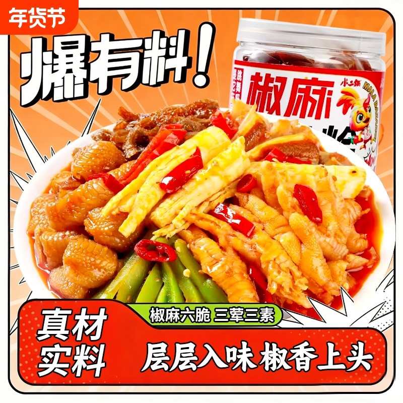 王小卤虎皮凤爪豉汁豉椒鸡爪肉类熟食美味小吃追剧零食下酒菜s