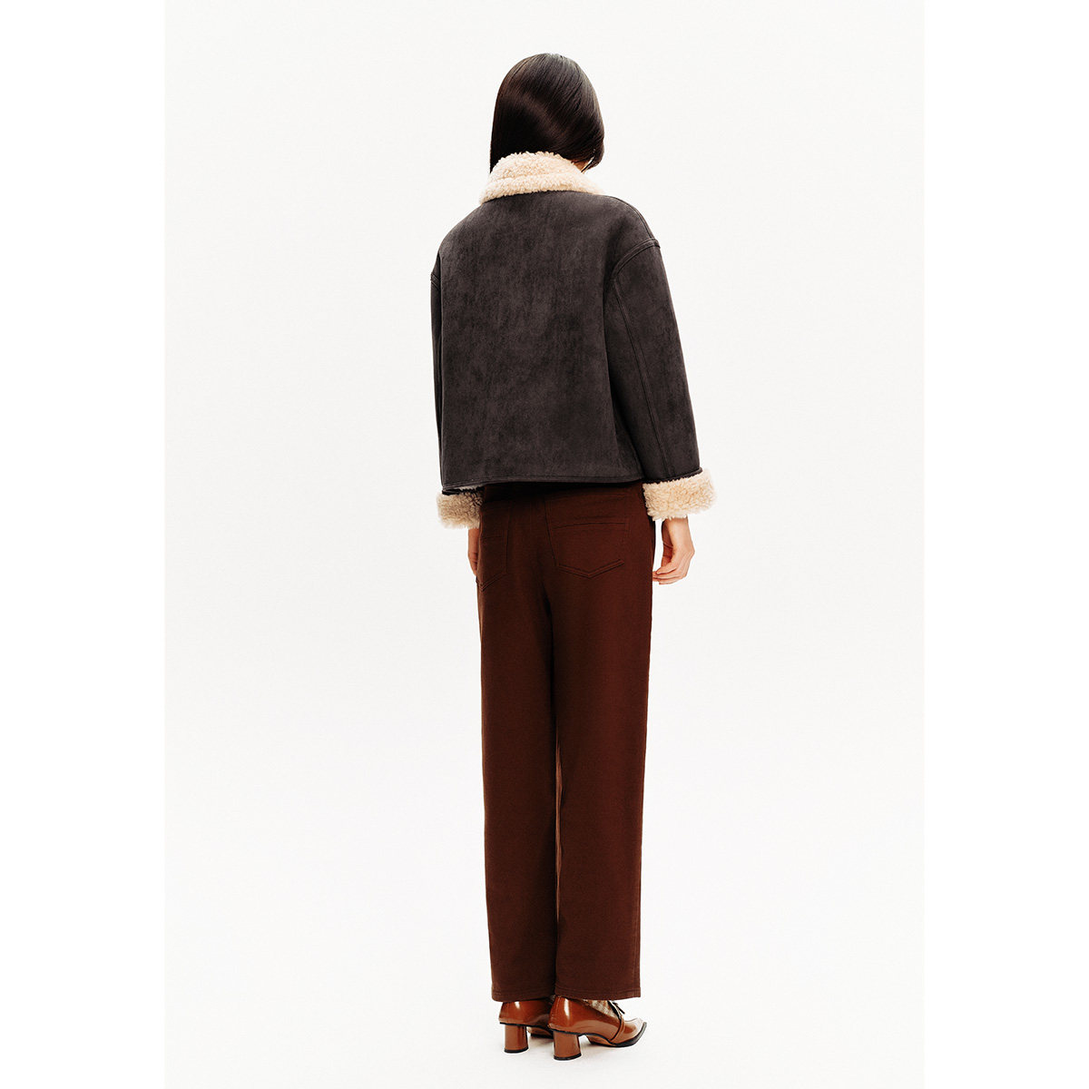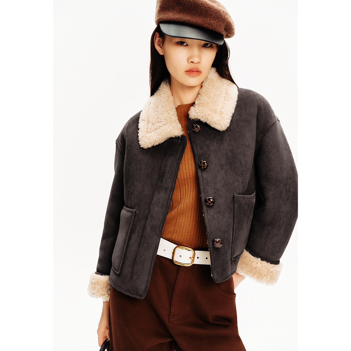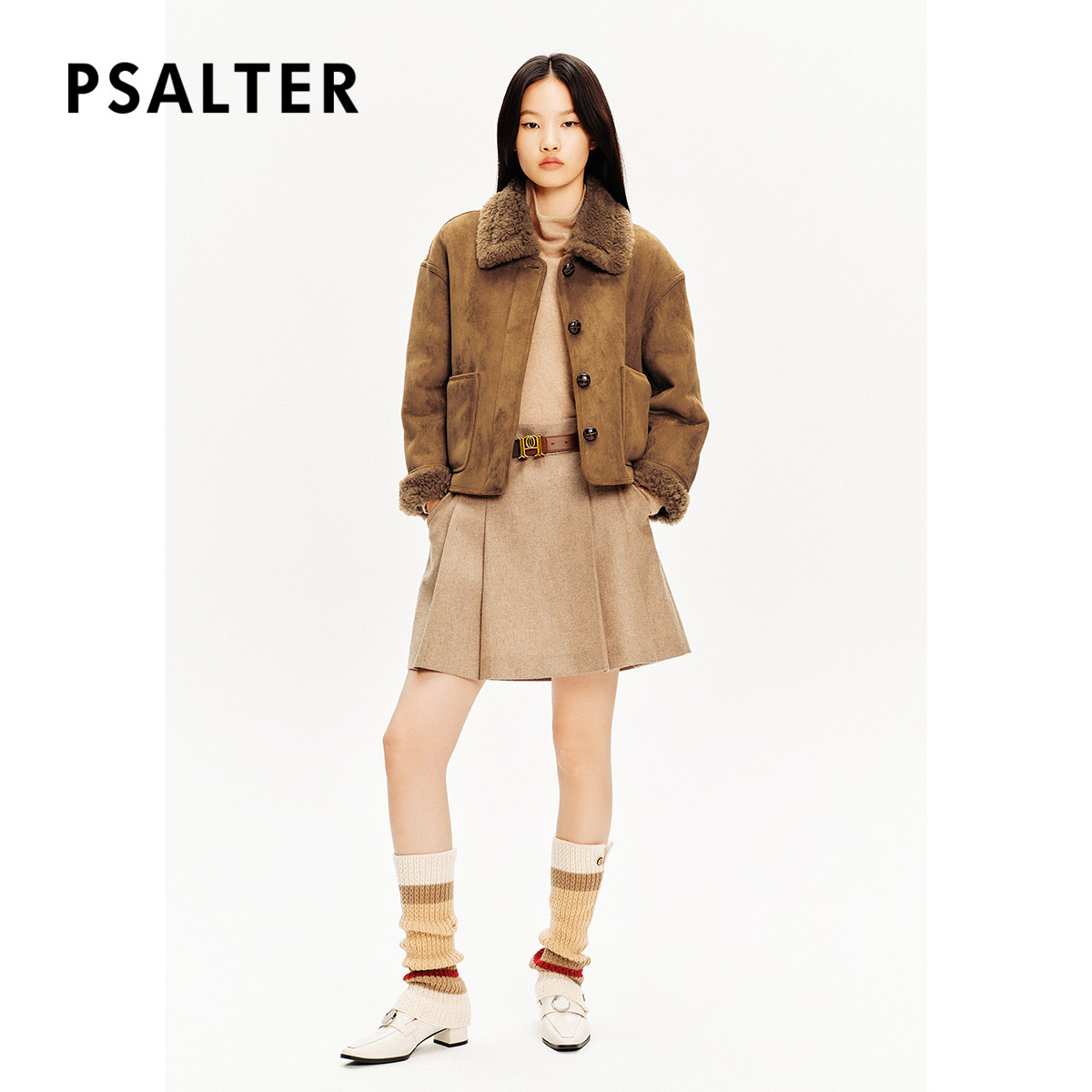 PSALTER诗篇学院风减龄翻领短款绵羊毛内里皮草外套冬款
