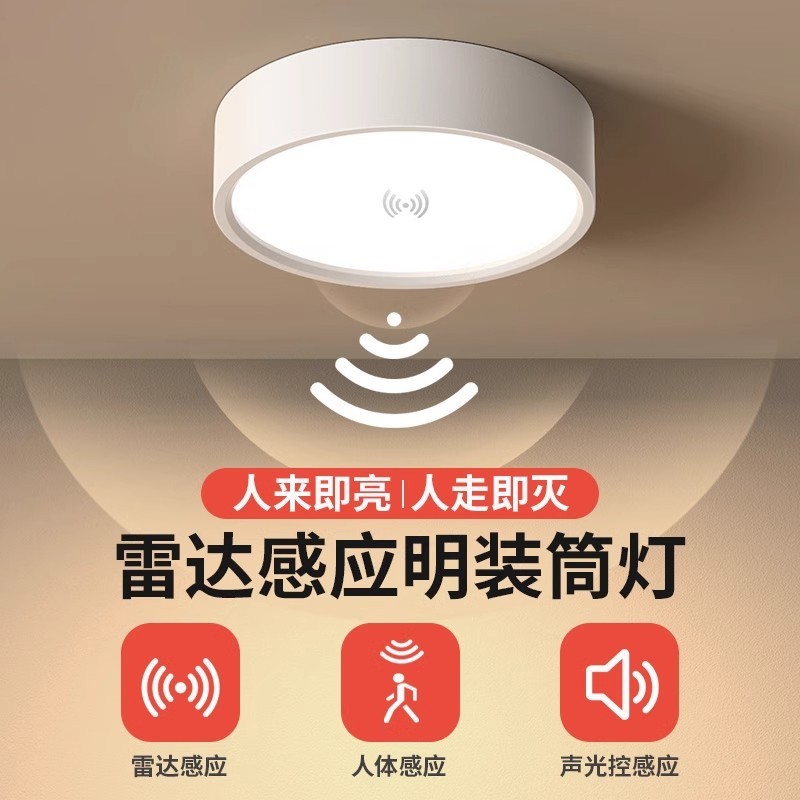 人体感应灯家用走廊过道吸顶灯声控灯楼道楼梯全自动雷达感应筒灯