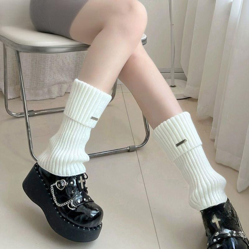 辣妹针织腿套女冬季加厚保暖白色袜套配雪地靴堆堆袜秋冬款小腿袜