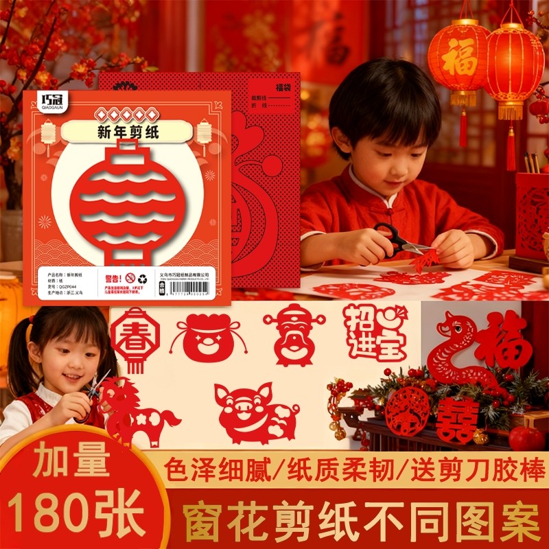 新年剪纸工具套装中国风窗花窗花剪纸儿童元旦春节手工纸DIY制作幼儿园小学生剪纸专用纸