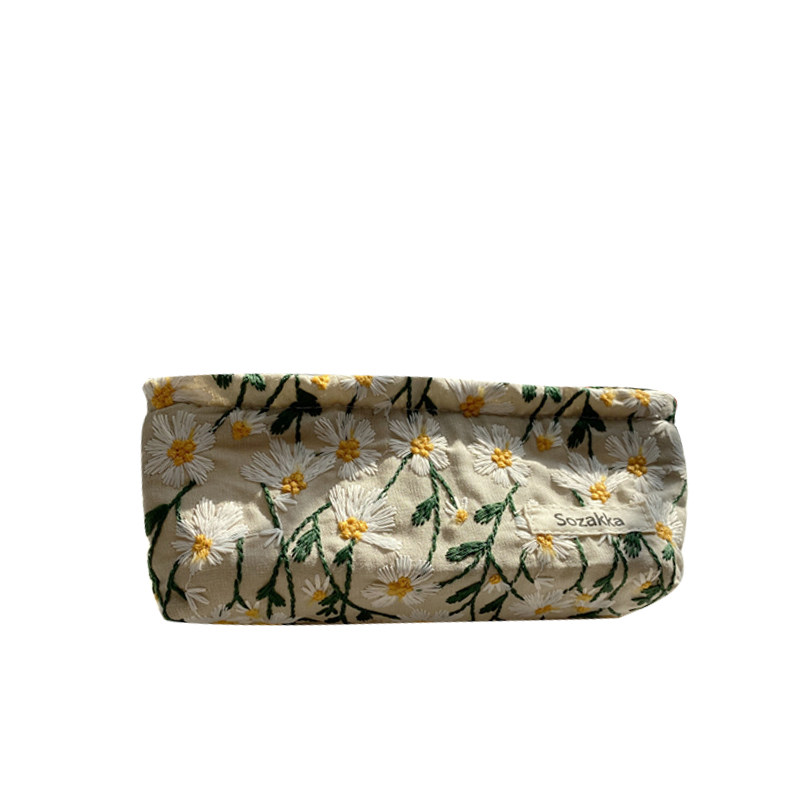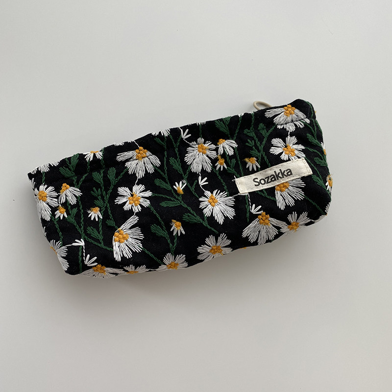 小白兔几 文艺刺绣雏菊笔袋ins日韩系女孩学生大容量收纳袋文具盒
