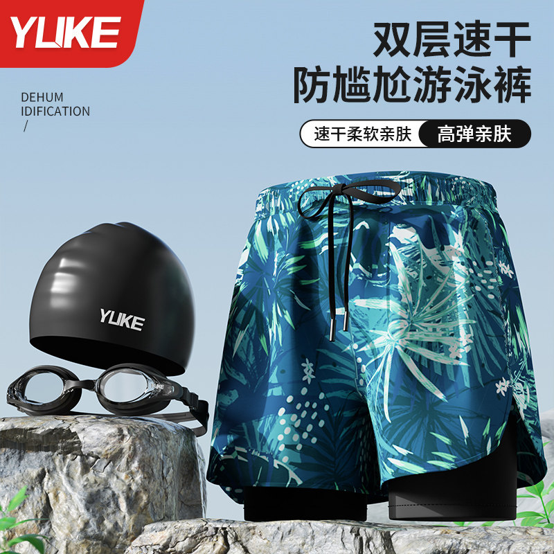 泳裤男士双层防尴尬2025新款沙滩裤男泳帽泳镜男款泡温泉游泳装备