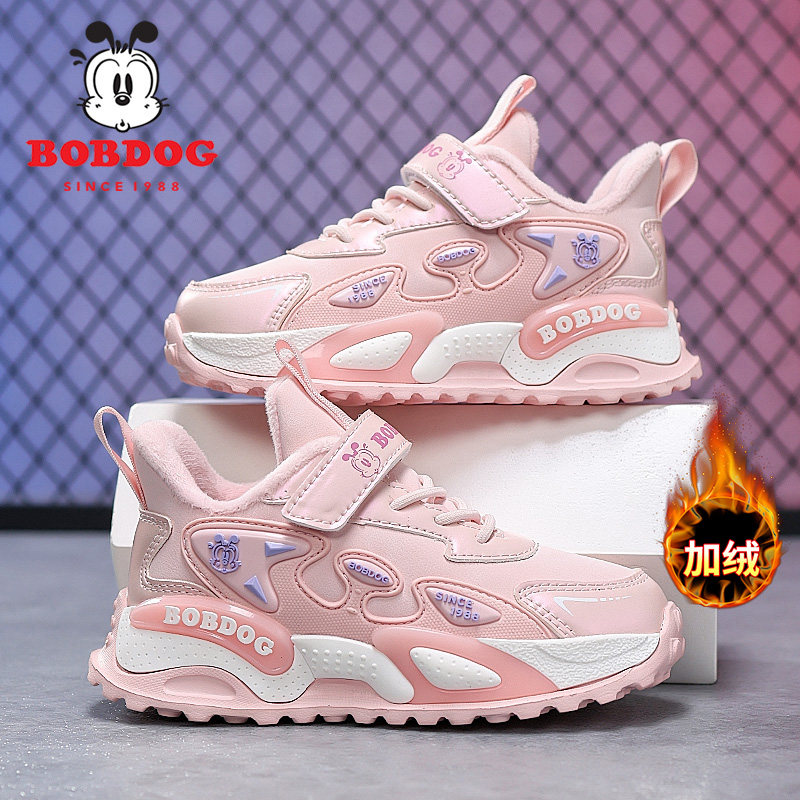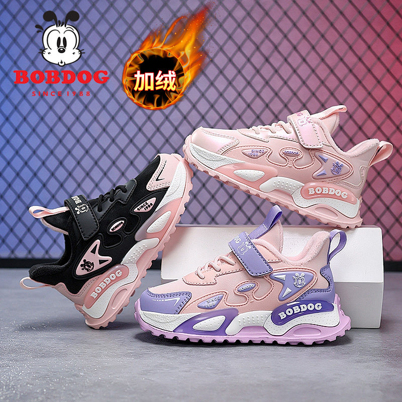 巴布豆女孩二棉鞋子2025潮女童加绒保暖休闲运动鞋儿童冬鞋防水