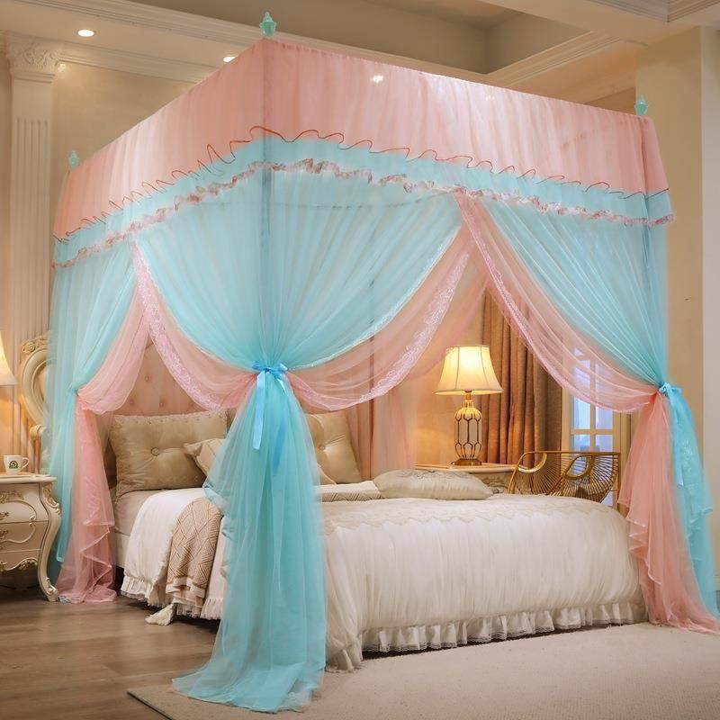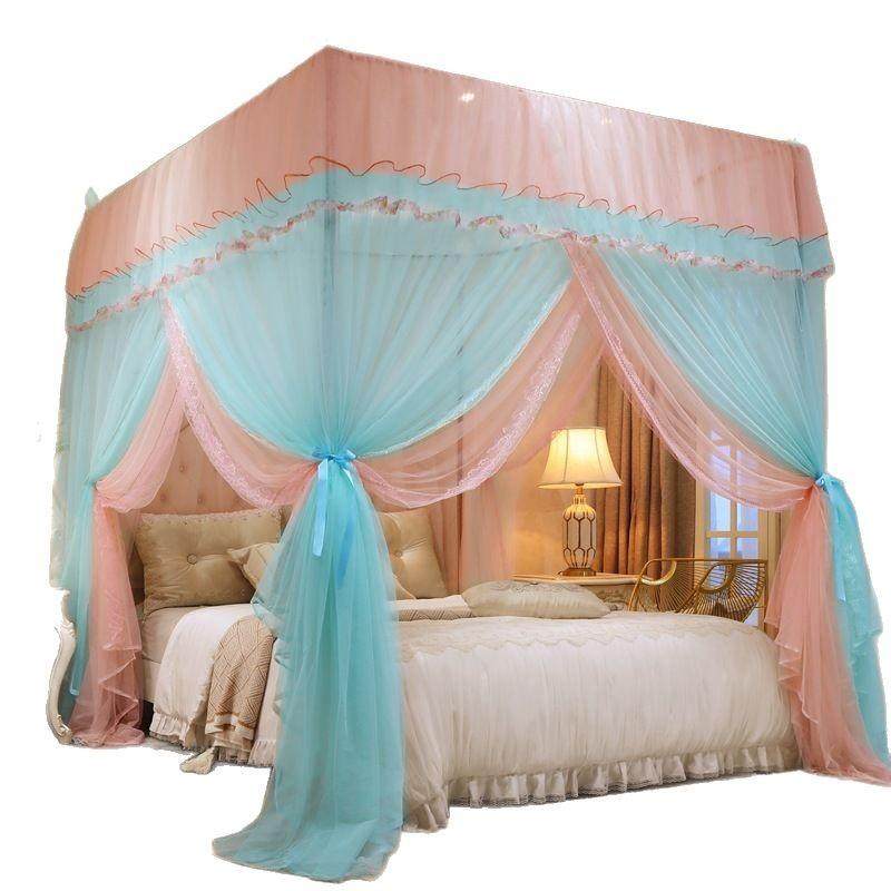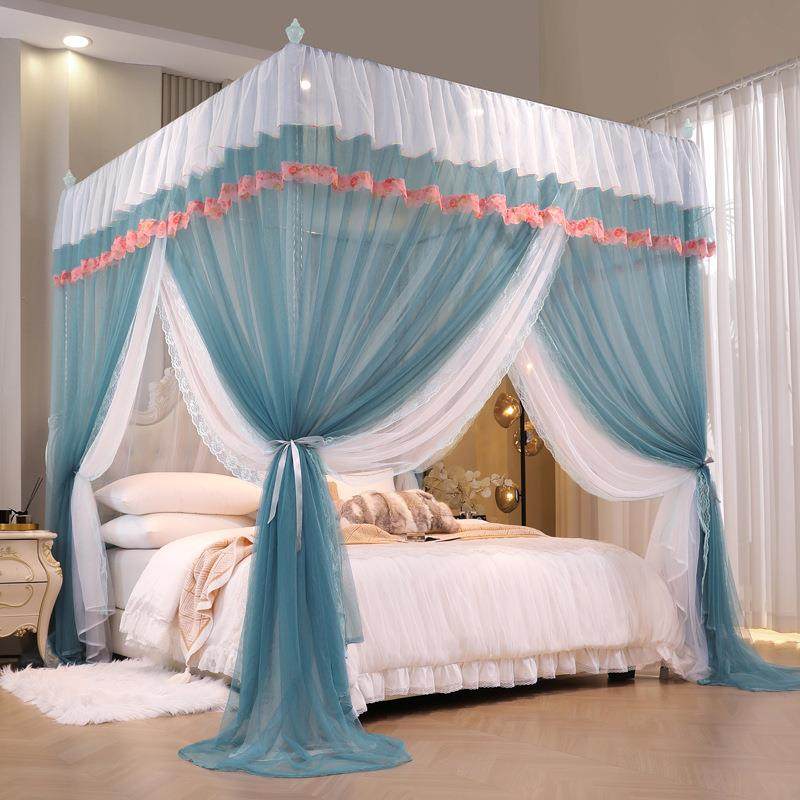 蚊帐防尘遮光床帘床幔宫廷落地蚊帐公主风三开门双层蚊帐加密网眼