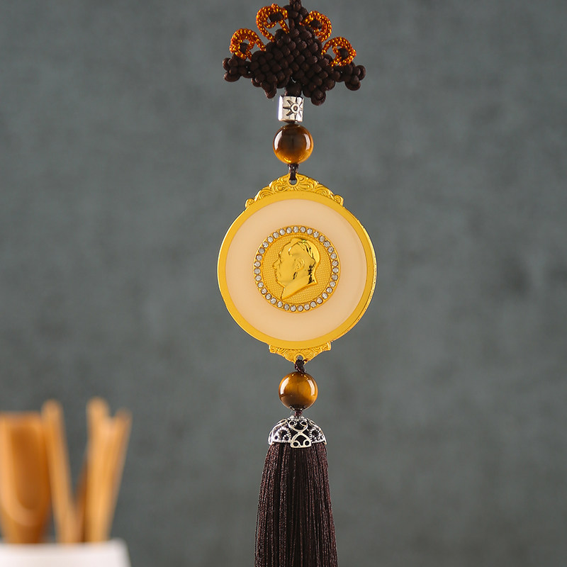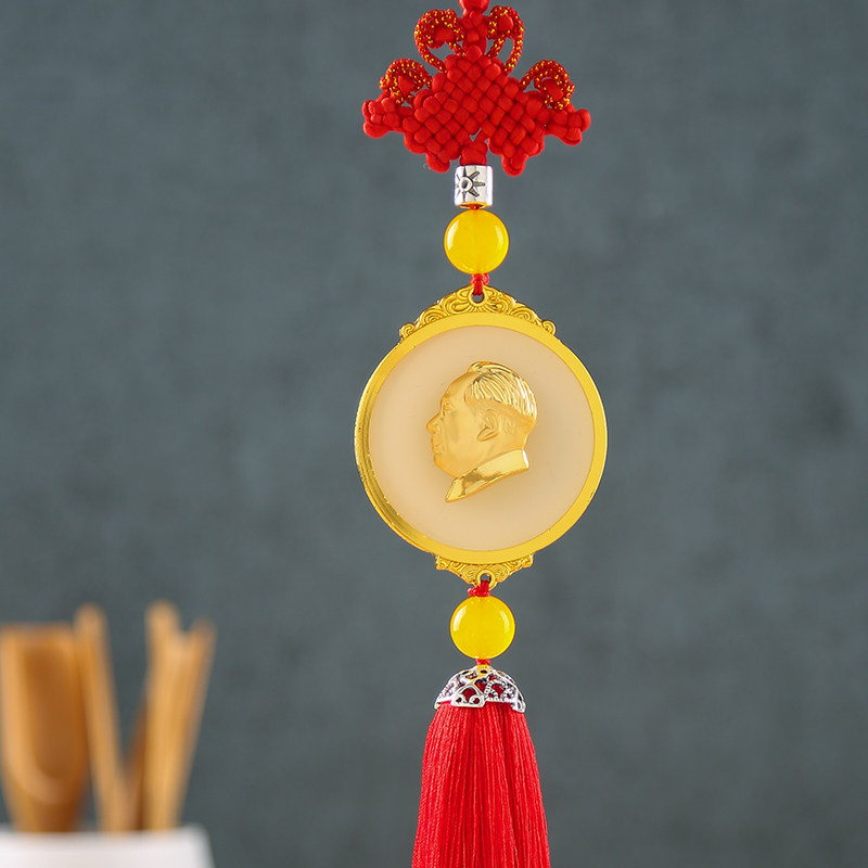 毛主席汽车挂件高档车内挂饰后视镜毛泽东头像挂件金镶玉石平安符