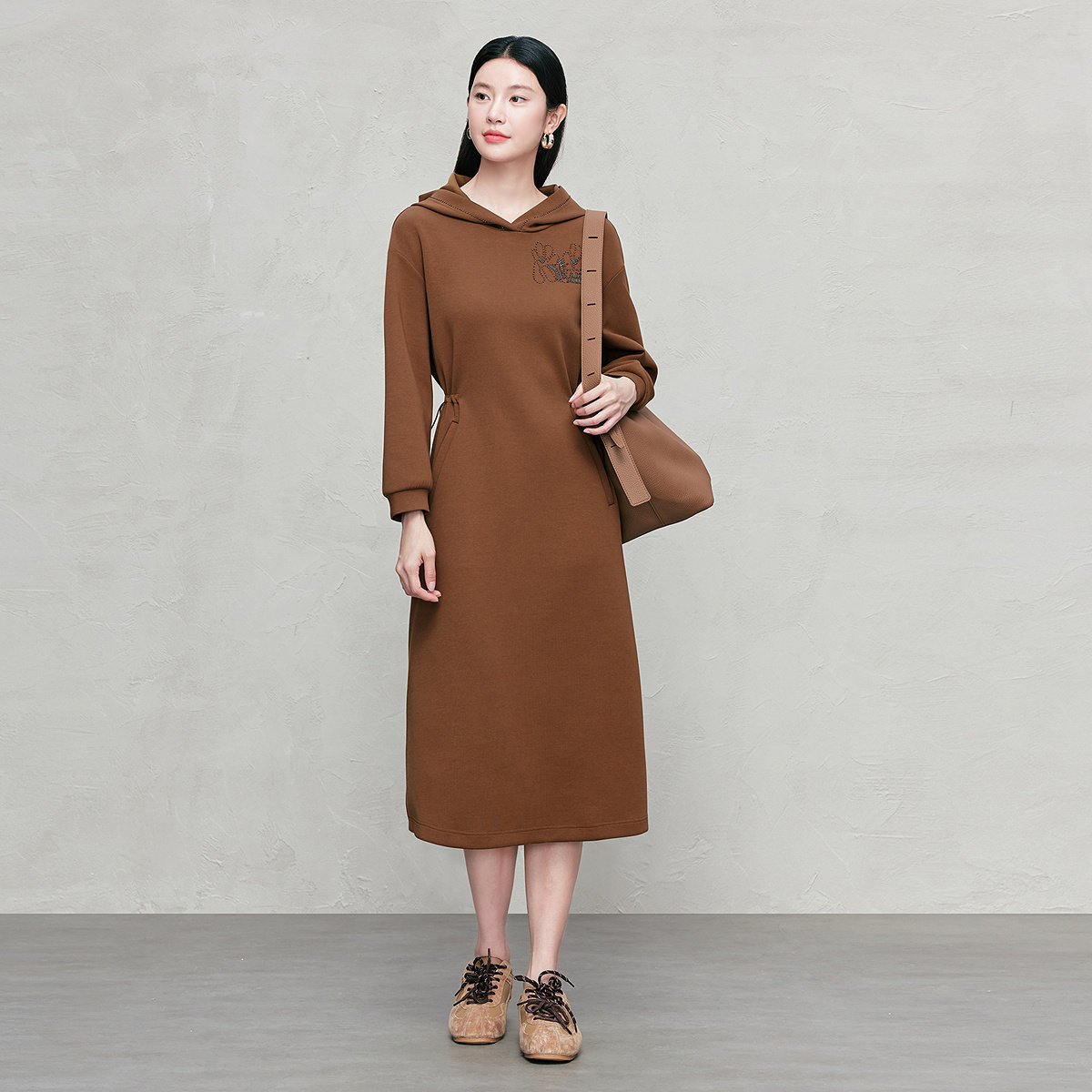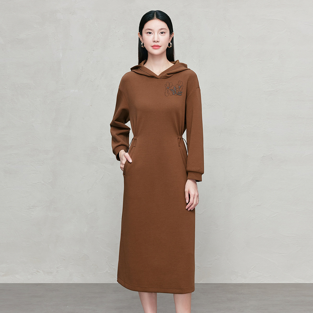 【商场同款】FINITY菲妮迪连衣裙26春新款简约连帽咖色棉质长裙女