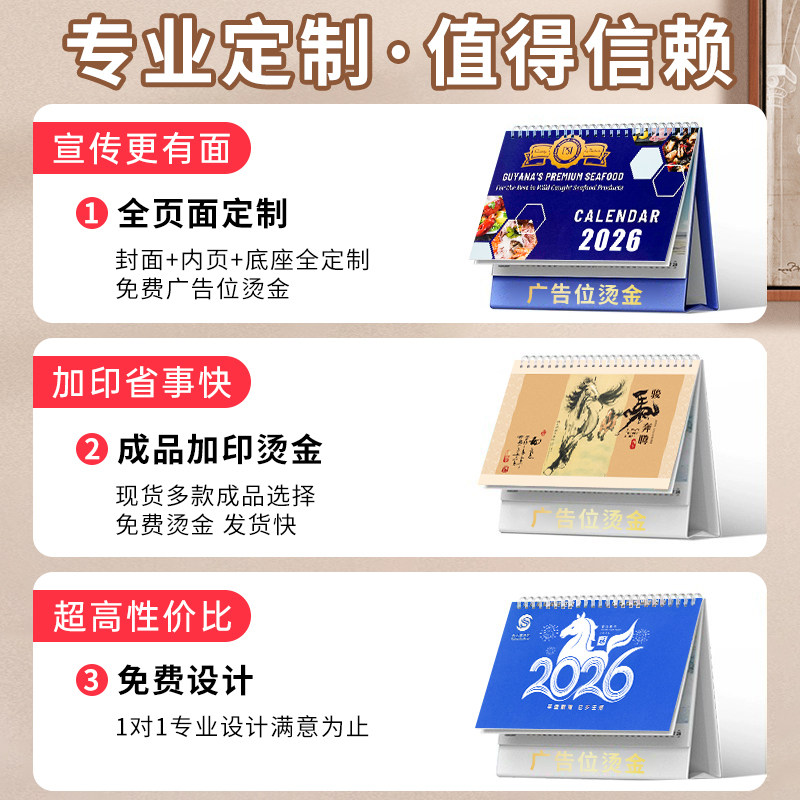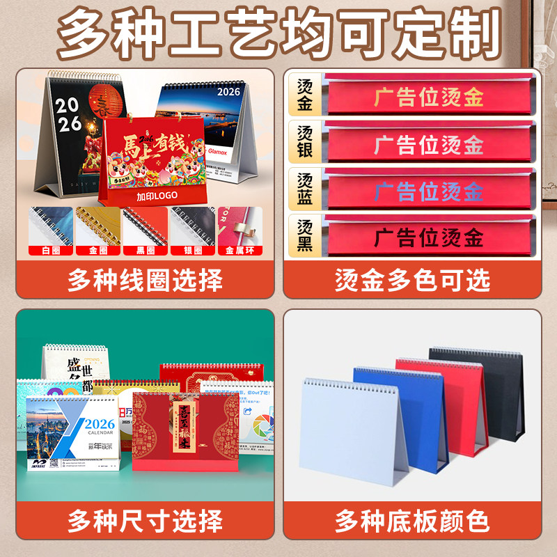 2026马年台历定制烫金广告logo专版印刷企业宣传全定制日历定做