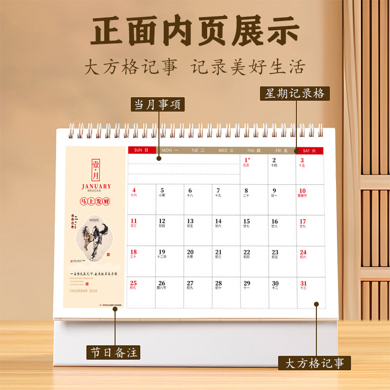 台历2026年新款日历定制logo创意简约小清新韩式办公年历个性中国风桌面摆件商务工作记事计划本订制广告月历
