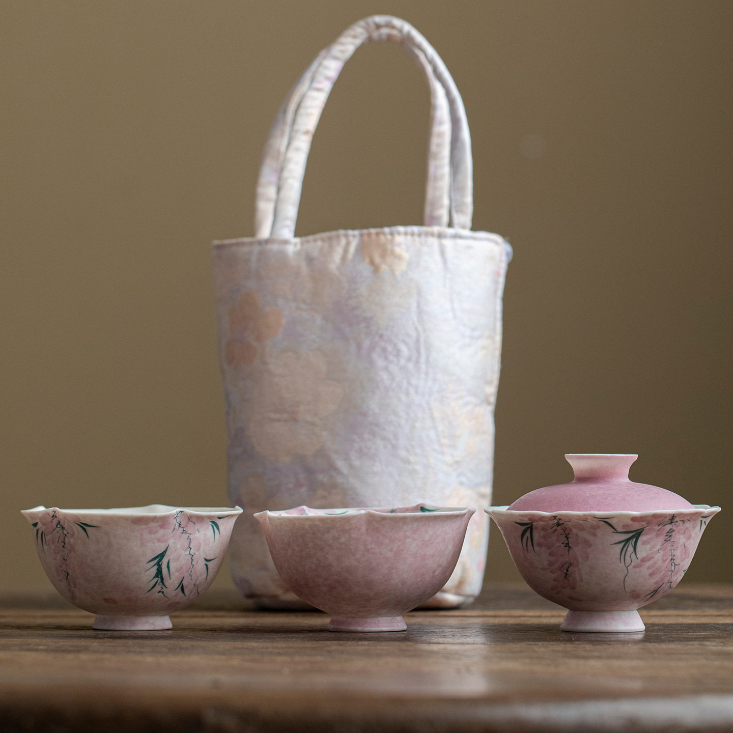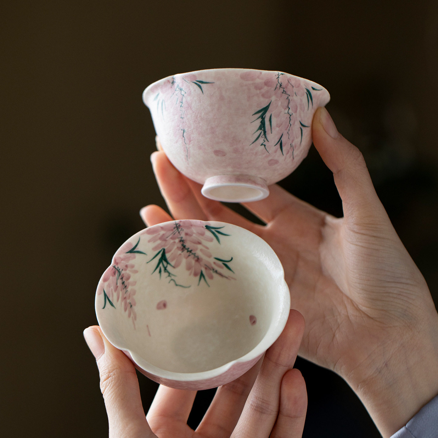 弥言纯手绘紫藤花陶瓷茶壶盖碗茶杯主人杯高颜值功夫茶具套装合集