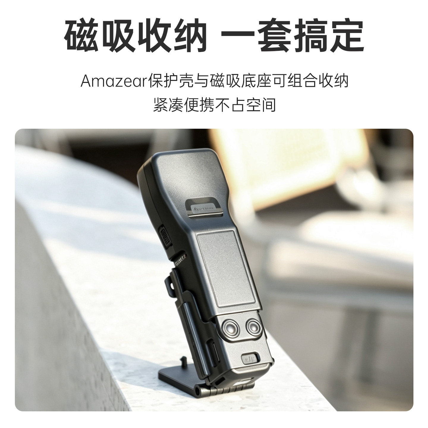 适用大疆pocket3/4磁吸支架底座汽车吸盘多功能OSMO POCKET4口袋相机桌面固定车载吸盘兔笼保护边框拓展配件