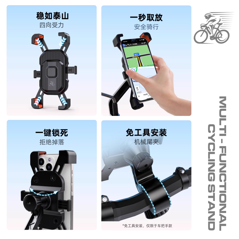 电动车手机支架防震防抖电瓶自行车导航后视镜款外卖骑手新款神器