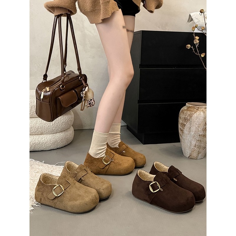 厚底全包勃肯鞋女鞋子2025新款秋冬一脚蹬博肯豆豆鞋加绒毛毛棉鞋