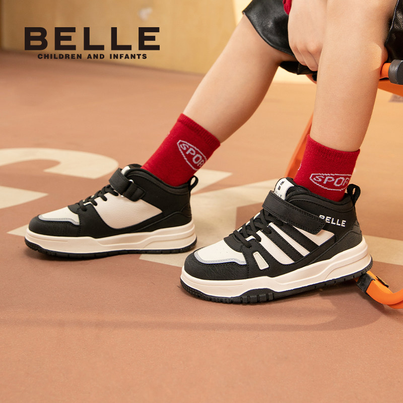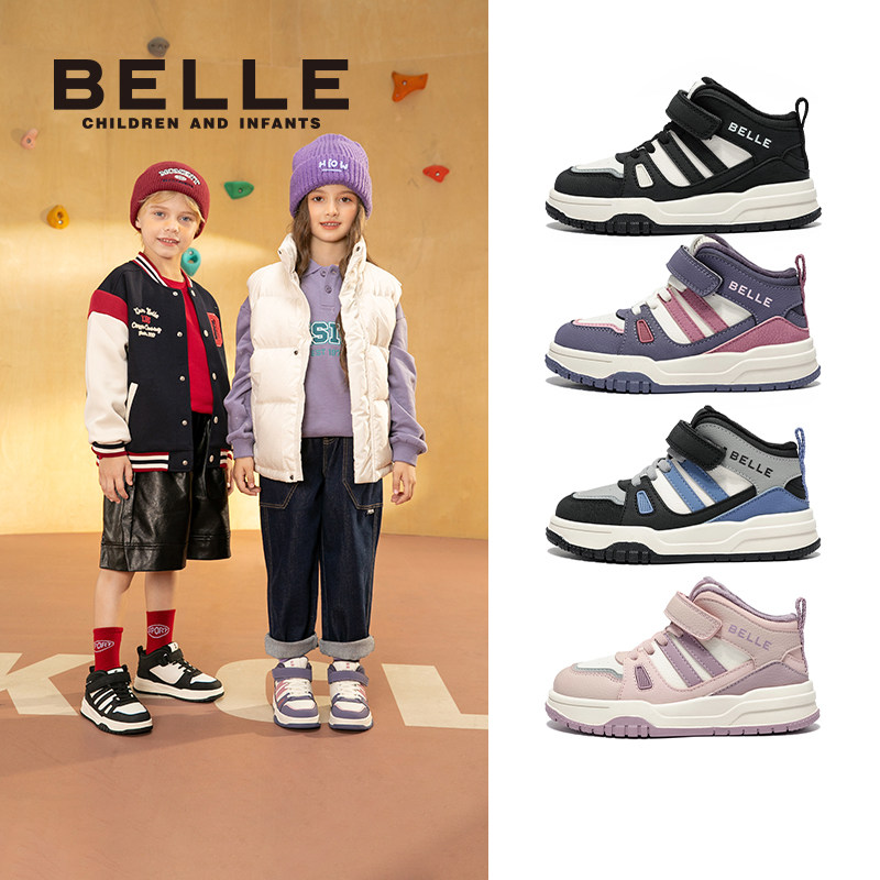 百丽童鞋女童高帮板鞋冬季2025新款儿童加绒保暖运动鞋男童二棉鞋