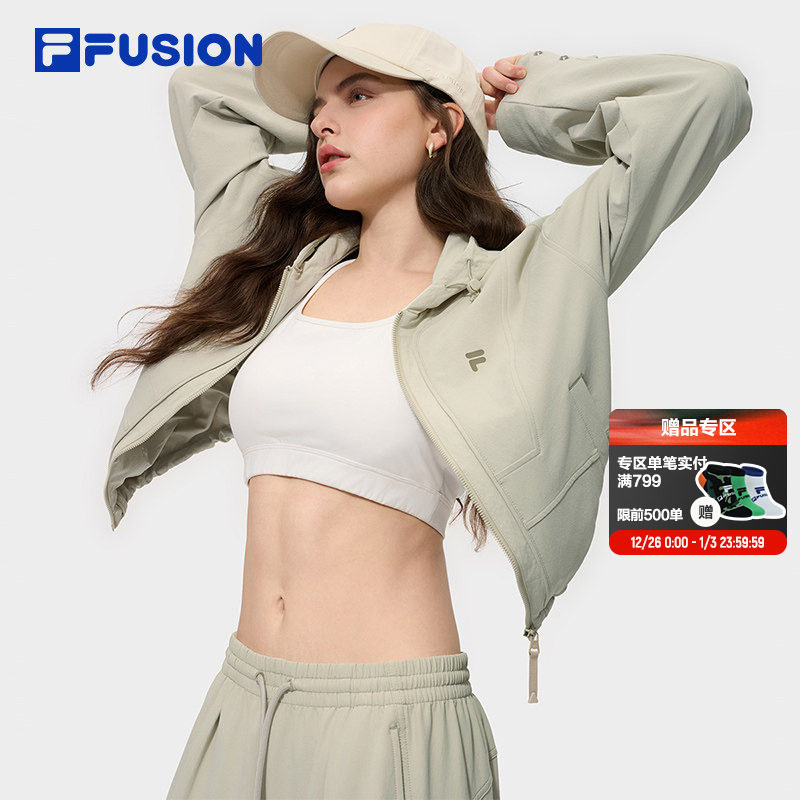 FILA FUSION斐乐潮牌梭织外套女2025冬新款时尚宽松短款连帽上衣