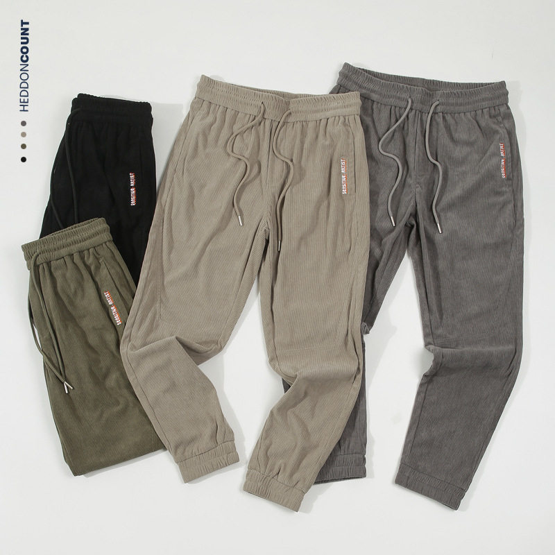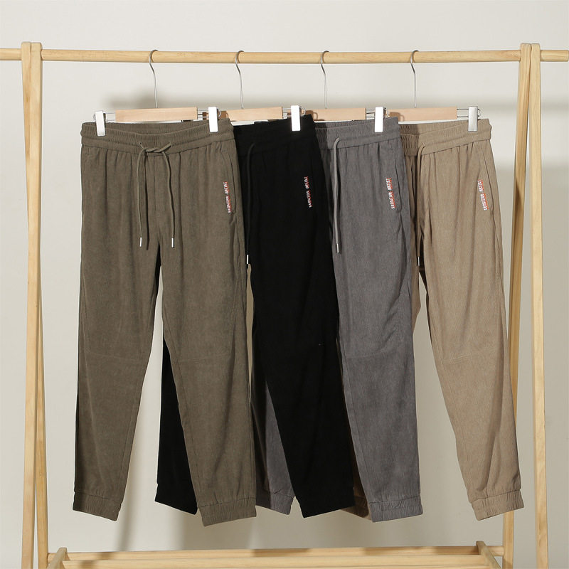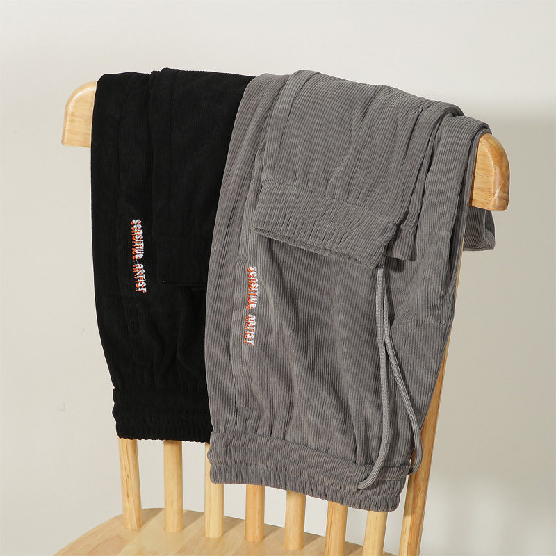 撤柜撤标(M)灯芯绒休闲裤男秋季新款日系复古宽松刺绣小脚长裤子
