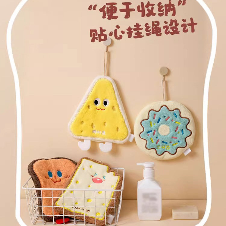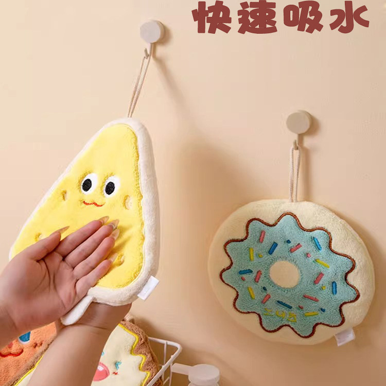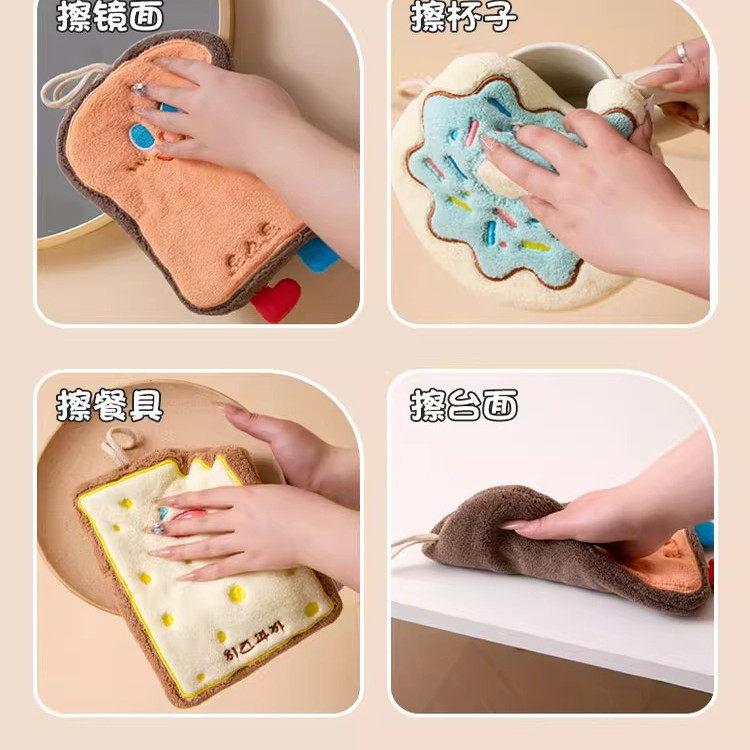 可爱擦手巾厨房挂式毛巾擦手卫生间吸水三层加厚抹布家用儿童手帕
