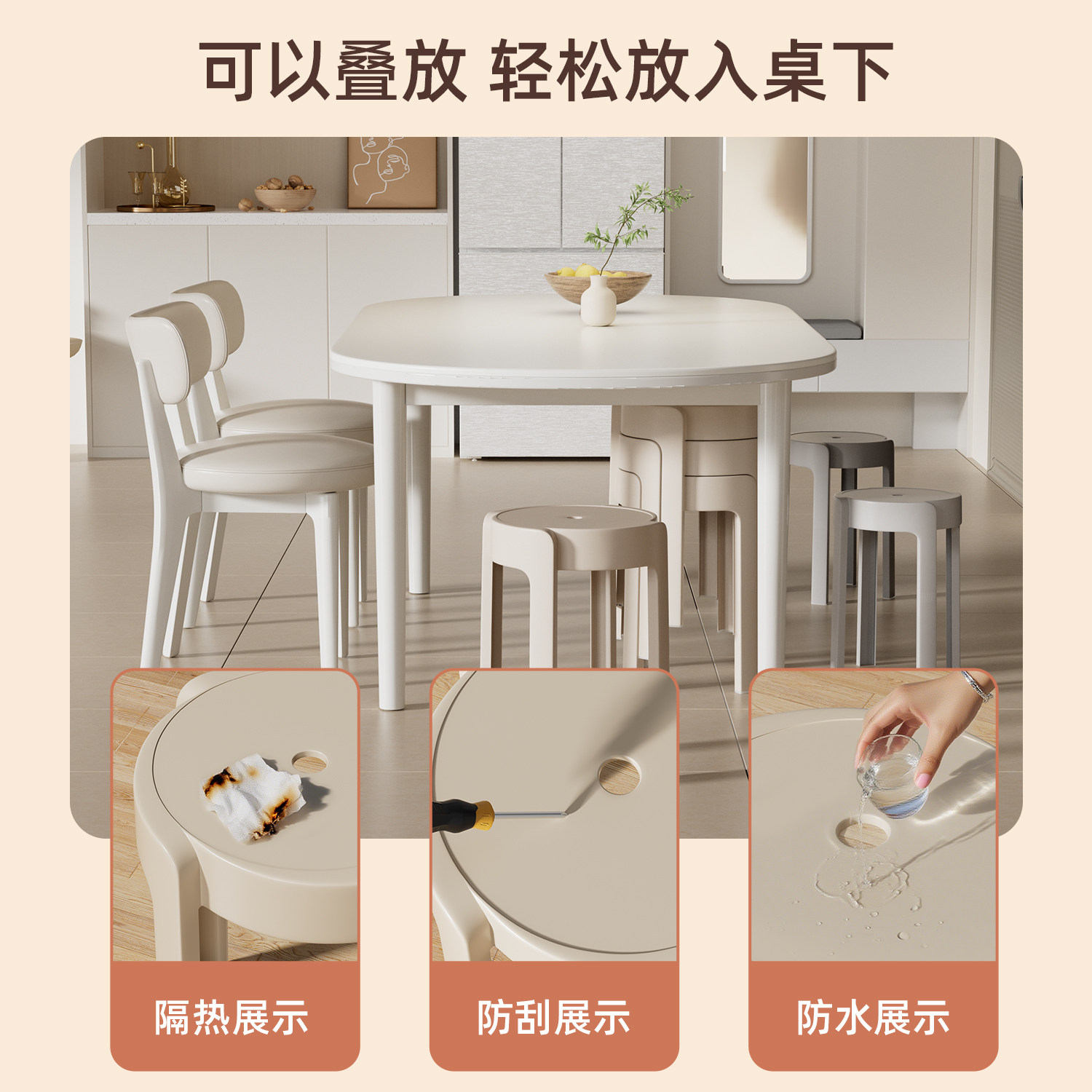 三梦塑料凳子家用加厚可叠放软包圆凳餐桌备用高板凳中古简约椅子