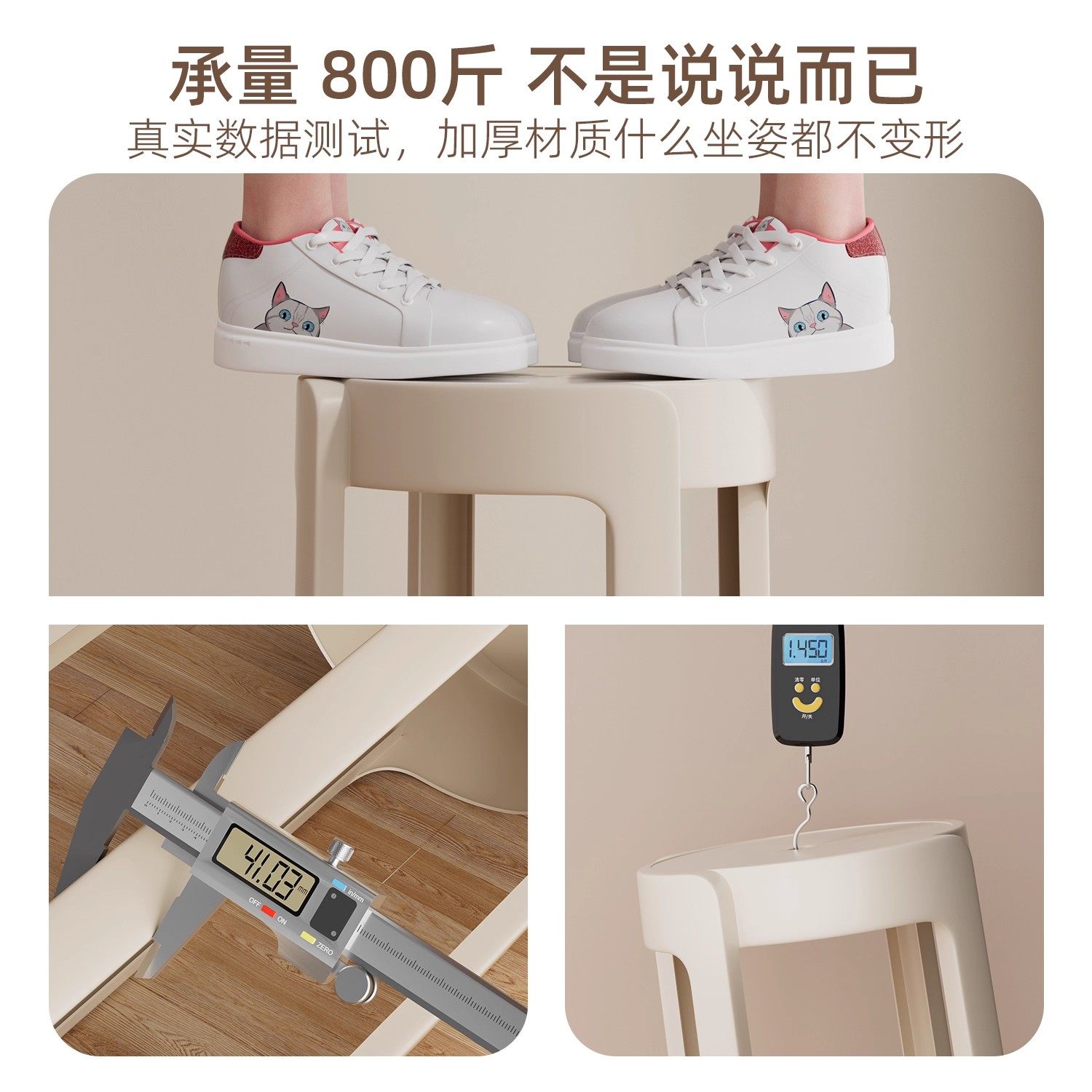 塑料凳子家用软包可叠放加厚结实耐用轻奢高级感圆凳子备用高椅子