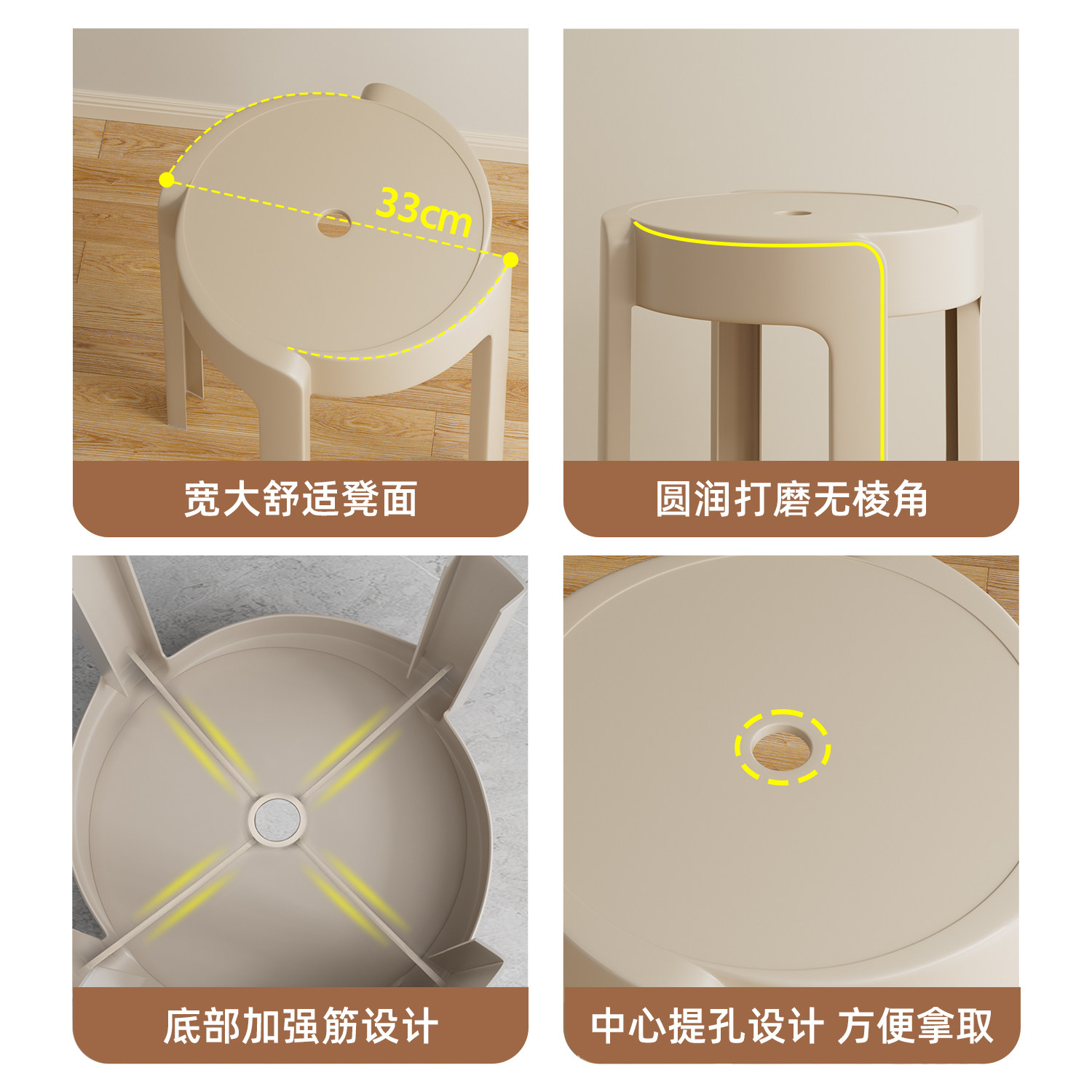 家用凳子可叠放加厚塑料圆凳结实耐用餐桌凳轻奢高级板凳客厅餐椅