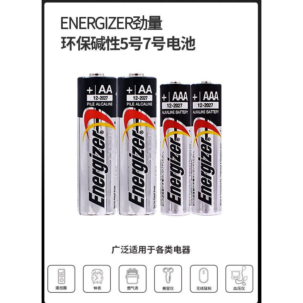 美国energizer 劲量5号电池AA碱性7号玩具遥控器鼠标电动牙刷电池
