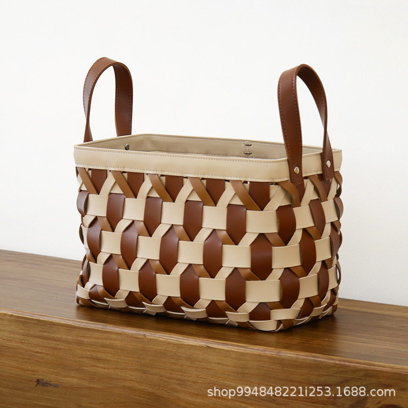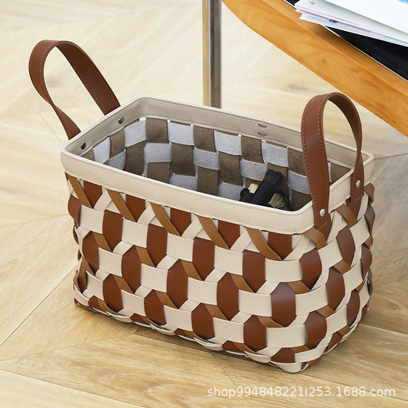 皮革手工编织脏衣篮家用衣帽间衣服收纳篮洗衣玩具收纳衣物收纳盒