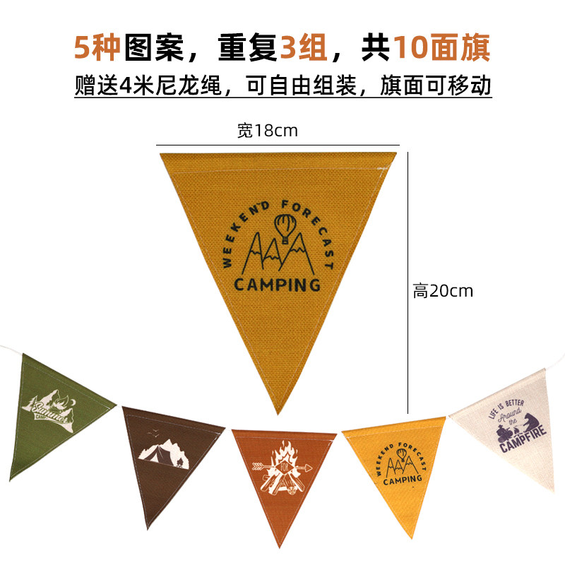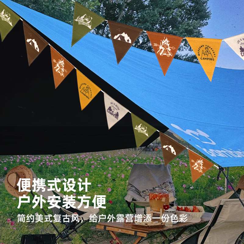 露营氛围布置串旗营地场景布置三角彩旗定制户外帐篷天幕装饰小物件野营吊旗旅行露营造景必备用品挂布定制
