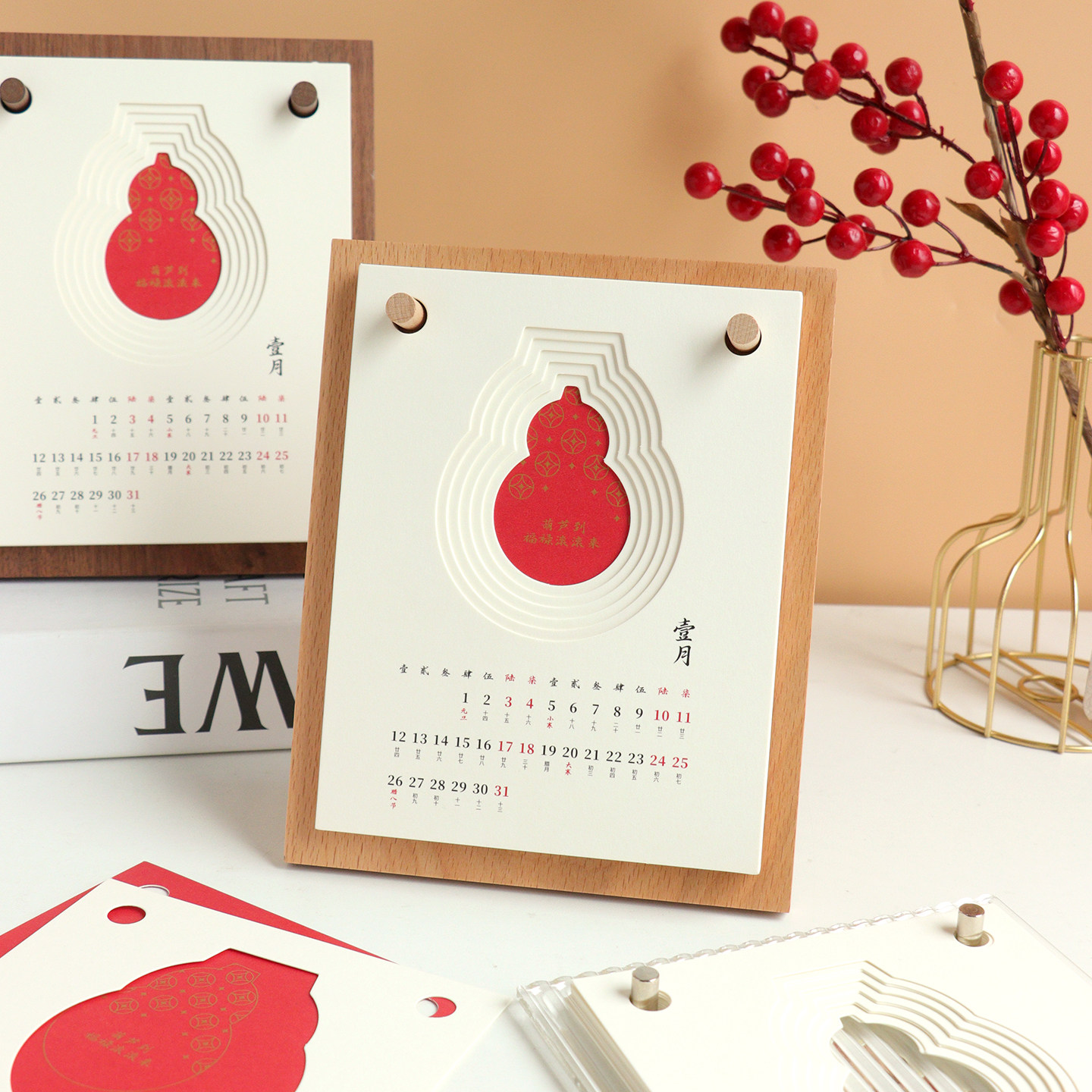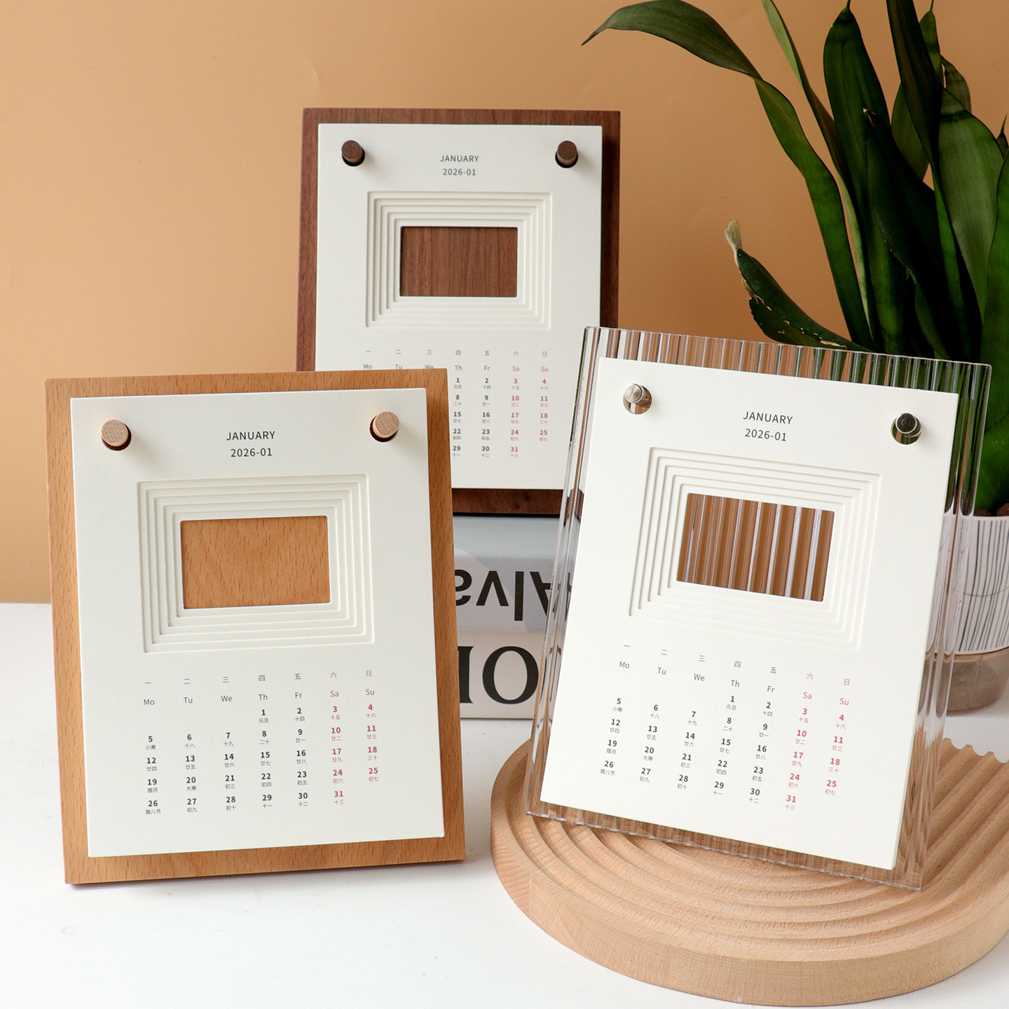 2026年新款镂空款台历创意设计logo高档木质月历定制办公室摆件时尚桌面万年历活动计时倒计时提醒送礼