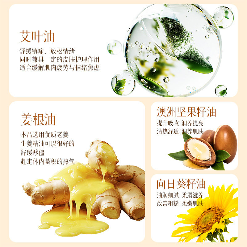 艾草生姜按摩精油全身体通经络发热人体排毒刮痧开背推拿疏通免洗