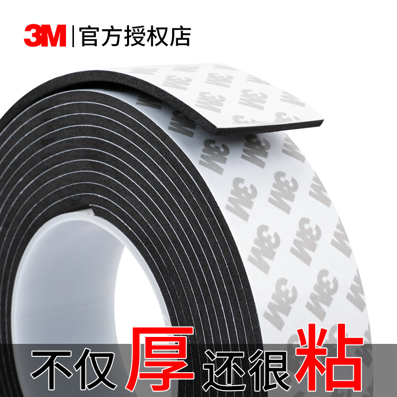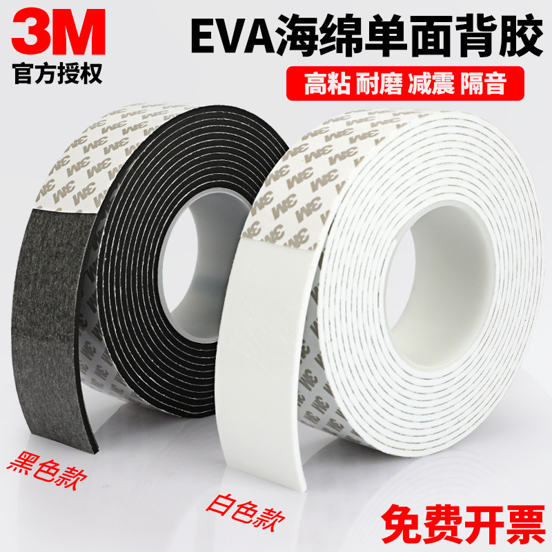 3m单面EVA泡棉加宽加厚自粘泡沫胶条防震缓冲防撞门窗密封条耐磨缓冲汽车隔音黑色海绵胶带123mm厚防滑胶贴