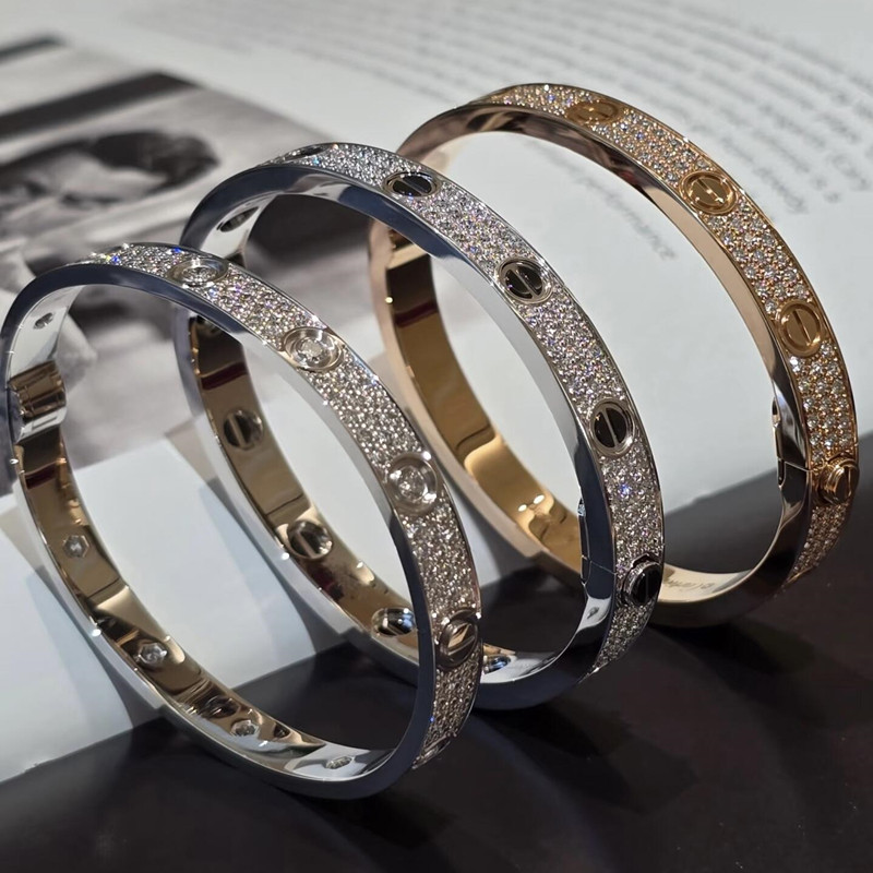 轻奢高级感满钻手镯女银色钛钢不掉色镯子手链手环新款情侣手饰品