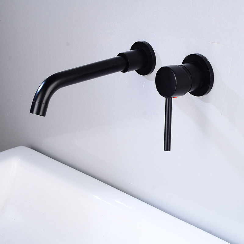 暗装入墙式冷热面盆水龙头拉丝金烤漆仿古黑色洗脸盆龙头黄铜三孔