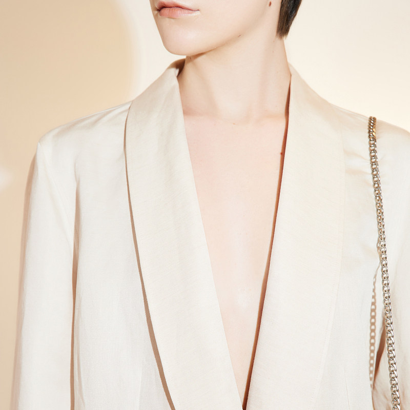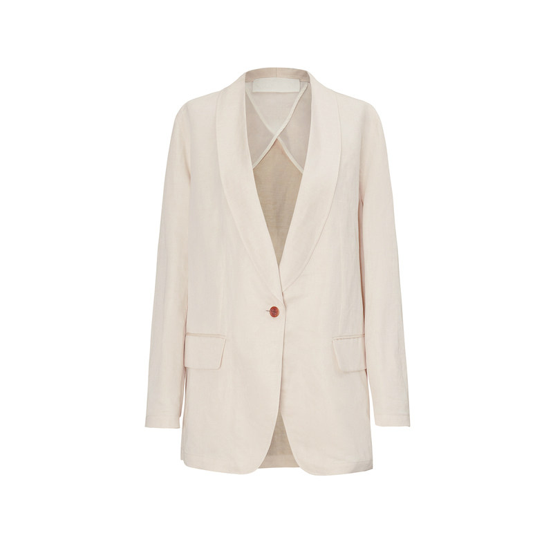 【LESSxSamuel】春秋西装女真丝亚麻混纺青果领西服外套2N7714220